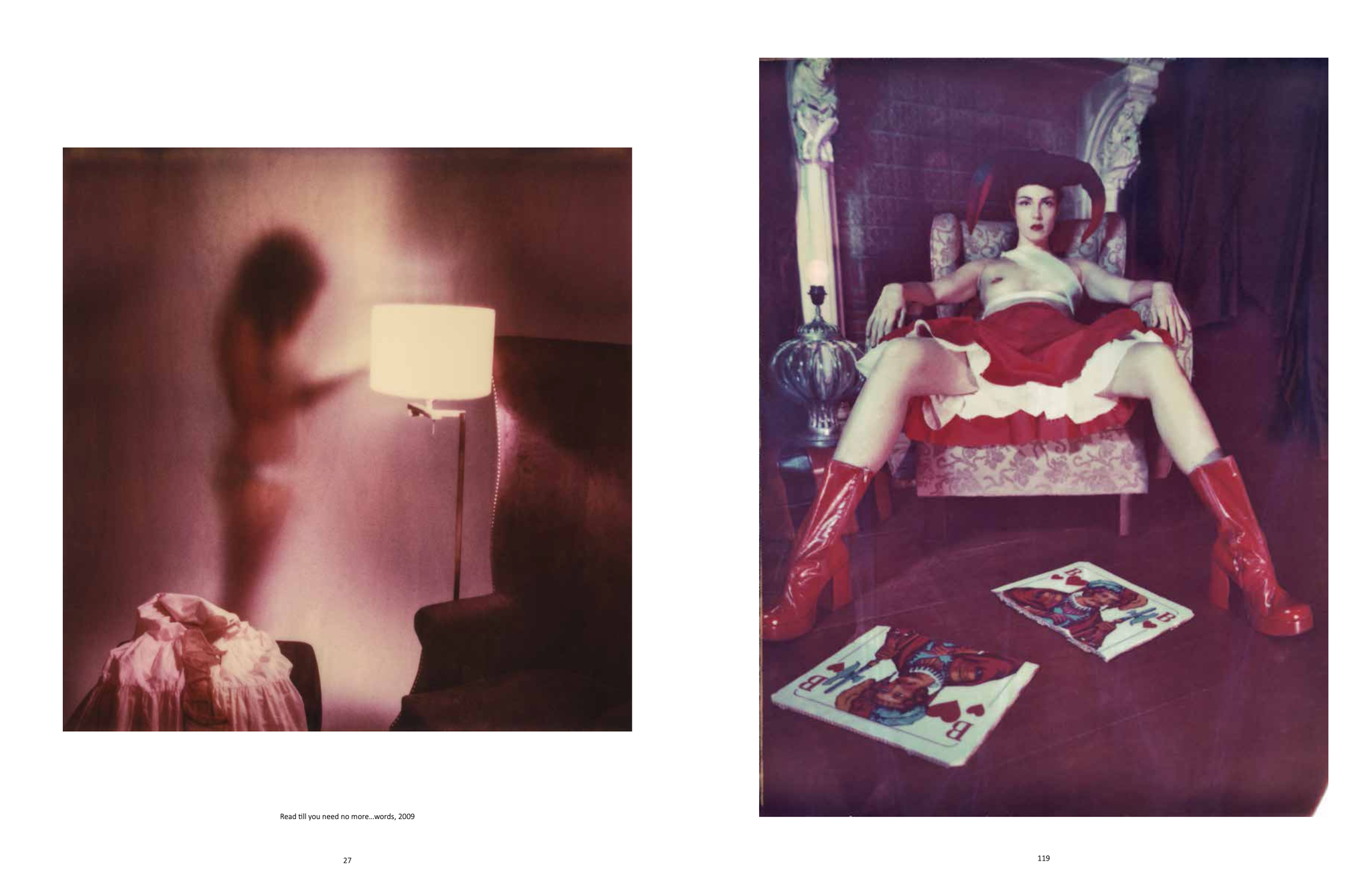 "Elke foto van kunstfotografe Carmen De Vos is een daad van escapisme. In haar universum is alles prikkelender, sensueler, weelderiger dan in onze alledaagse realiteit. Zwangere vrouwen zijn schaamteloos uitdagend, mannen kruipen ongegeneerd voor vrouwen, foxy femmes tonen trots hun derrière. Tien jaar lang legde ze deze schaamteloosheid vast op polaroid, met een barokke beeldtaal die niet zomaar te ontcijferen valt. Al die foto’s zijn nu gebundeld in een luxueuze uitgave. De perfecte uitweg om de koude winterdagen wat te kruiden."